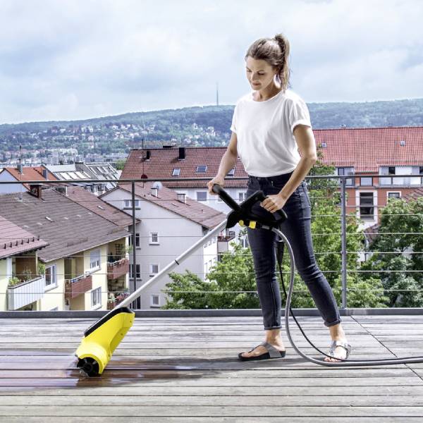 - نظافت فضاهای خارجی کوچک: از زمین شوی کابلی خانگی PCL4 میتوان برای تمیز کردن سطوح سخت در فضاهای خارجی کوچک مانند بالکن، پاسیو و راهروهای ورودی نیز استفاده کرد. اتصال مستقیم به شلنگ آب، امکان استفاده مداوم و بدون نگرانی از اتمام آب را فراهم میسازد.
